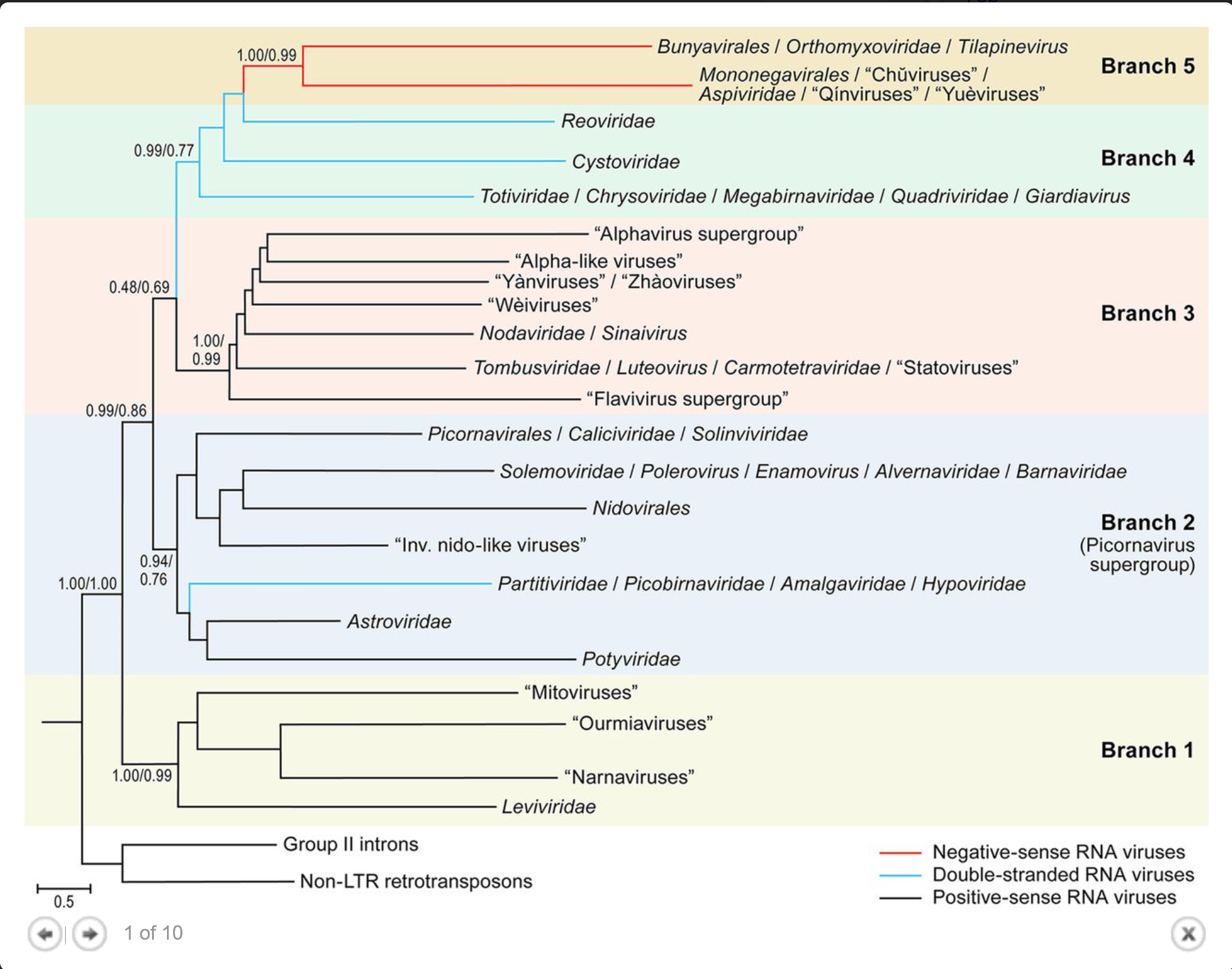 Viroids gave rise to a Peptide-RNA World that included RNA dependent polymerase elements such as Leviviridae and Retroviridae. Subsequent DNA elements arose and diversified into life forms including Plasmids, transposons, and multiple Viral RNA/DNA families.
